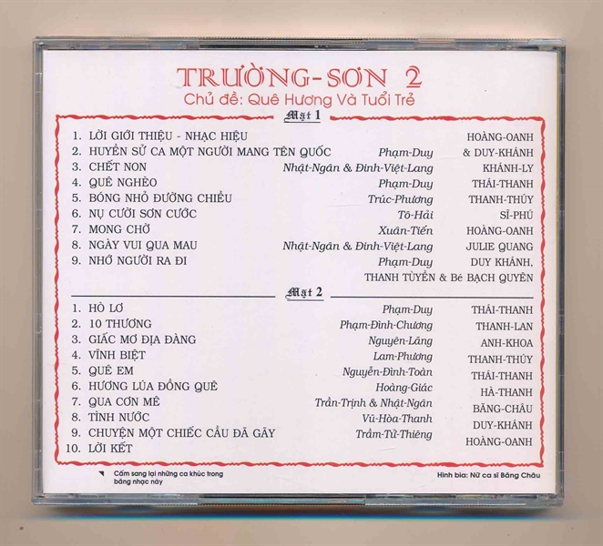 Quí khách lưu ý, đây là bản thu âm từ băng cối, âm thanh tốt, hàng không chính hãng, được sản xuất VN,