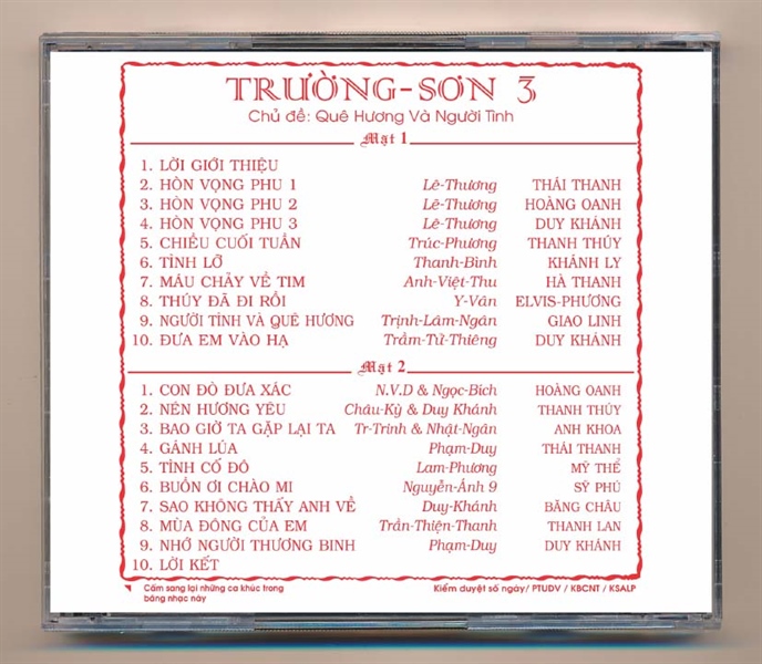 Quí khách lưu ý, đây là bản thu âm từ băng cối, âm thanh tốt, hàng không chính hãng, được sản xuất VN,