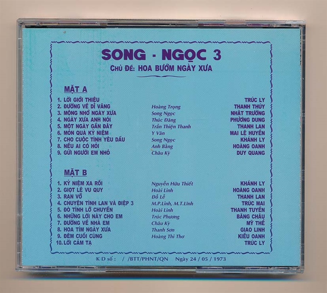 Quí khách lưu ý, đây là bản thu âm từ băng cối, âm thanh tốt, hàng không chính hãng, được sản xuất VN,