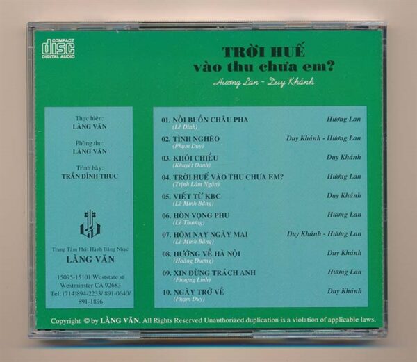 lưu ý đây là chương trình được thu lại từ băng cassette gốc. Mẫu này trung tâm chưa từng phát hành định dạng CD