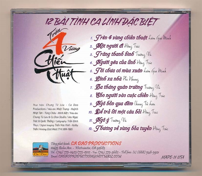 Ca Dao CD72 – 12 Bài Tình Ca Lính Đặc Biệt – Trên 4 Vùng Chiến Thuật (trầy) KGTUS