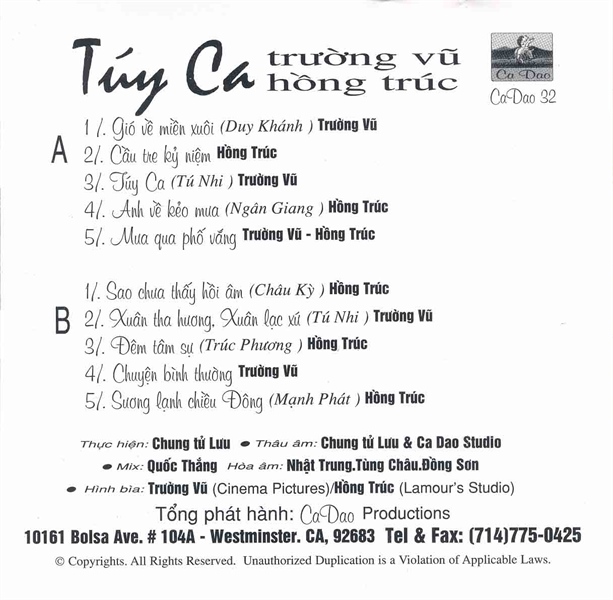 Ca Dao Tape 32 – Túy Ca – Trường Vũ – Hồng Trúc (KGTUS)
