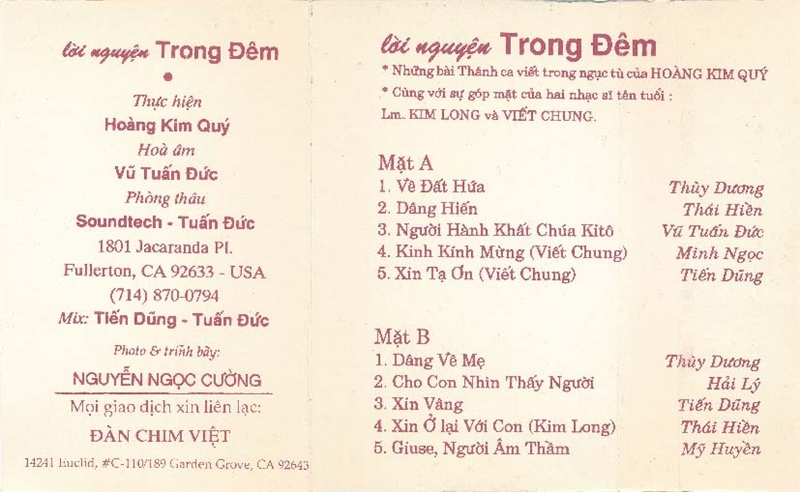 Đàn Chim Việt Tape – Lời Nguyện Trong Đêm (Thánh Ca) KGTH9