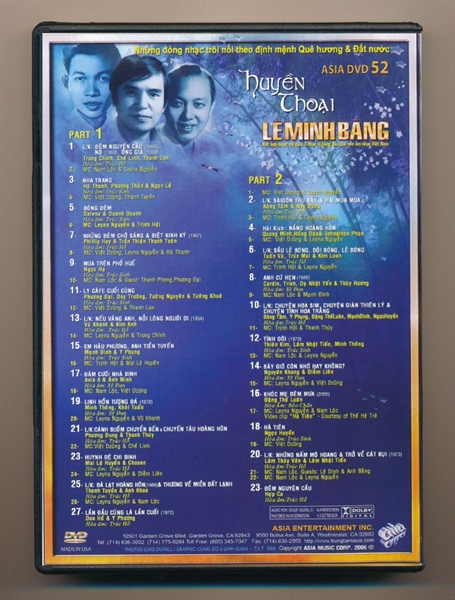 DVD ASIA 52 – Huyền Thoại Lê Minh Bằng (USED)
