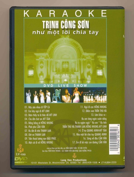 DVD Karaoke Làng Văn 199 – Live Show Trịnh Công Sơn – Như Một Lời Chia Tay