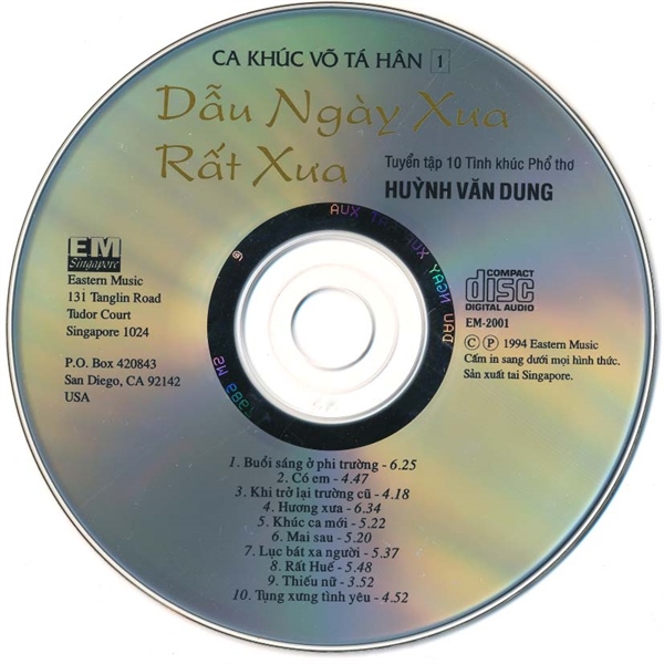 Eastern Music CD – Dẫu Ngày Xưa Rất Xưa – Tuyển Tập 10 Tình Khúc Phổ Thơ Hoàng Văn Dung – Ca Khúc Võ Tá Hân 1