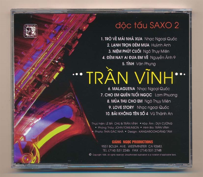 GNCD211 – Độc Tấu Saxo 2 – Cho Em Quên Tuổi Ngọc – Trần Vĩnh (3G, Trầy) KGTUS
