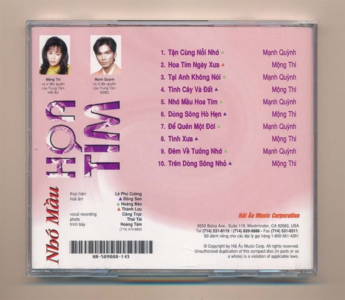 Hải Âu CD143 – Nhớ Màu Hoa Tím – Mạnh Quỳnh – Mộng Thi (KGTUS)