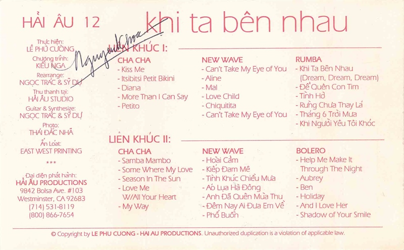 Hải Âu Tape 12 – Liên Khúc Khi Ta Bên Nhau – Trung Hành – Kiều Nga (KGTUS)