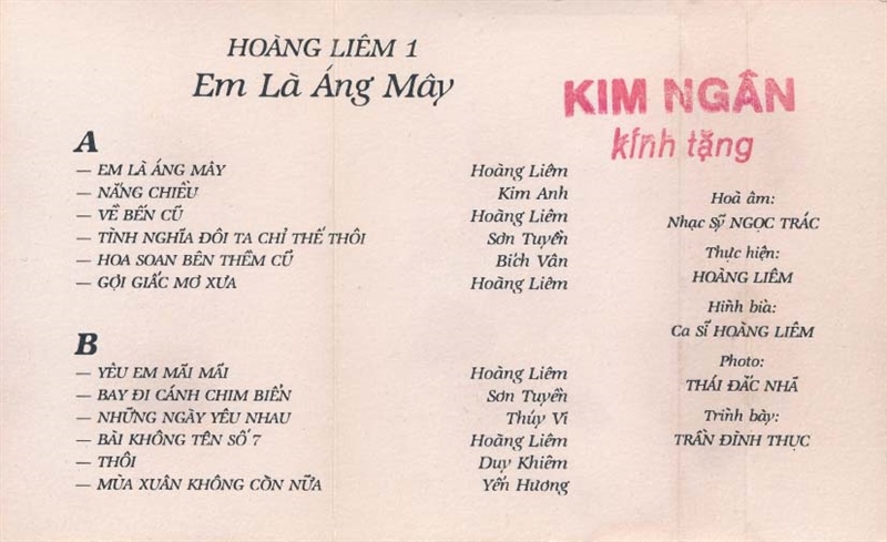 Hoàng Liêm Tape 1 – Em là Áng Mây (KGTUS)