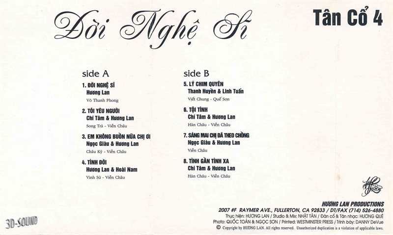 Hương Lan Tape – Tân Cổ 4 – Đời Nghệ Sĩ (KGTUS)