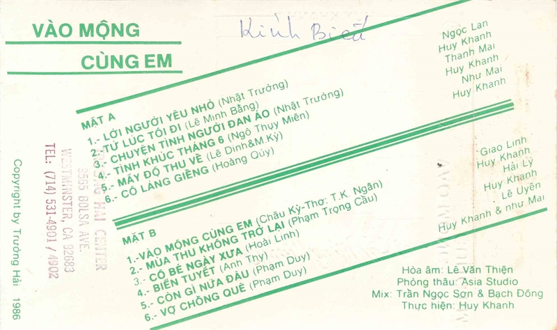 Huy Khanh Tape 1 – Vào Mộng Cùng Em (Băng Đen) KGTUS