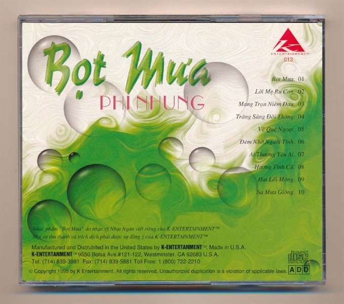K Entertainment CD13 – Bọt Mưa – Phi Nhung (ADCA, tb)