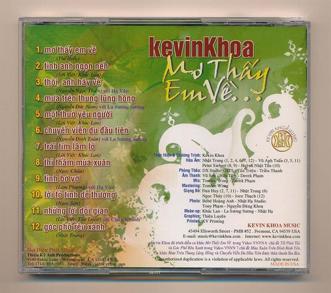 Kevin Khoa Music CD – Mơ Thấy Em Về – Kevin Khoa – Châu Khanh – La Sương Sương