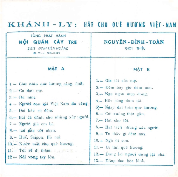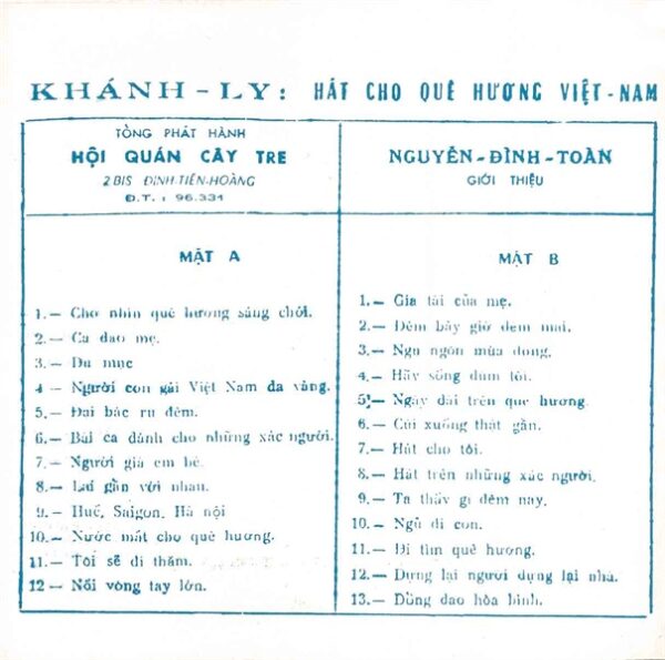 Khánh Ly Tape (Pre75) – Hát Cho Quê Hương Việt Nam 1 (KHÔNG BÌA GỐC) KGTUS