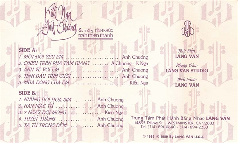 Làng Văn Tape 127 – Tình Khúc Trần Thiện Thanh – Kiều Nga – Anh Chương (Băng Trắng Trong, KHÔNG BÌA GỐC) KGTUS