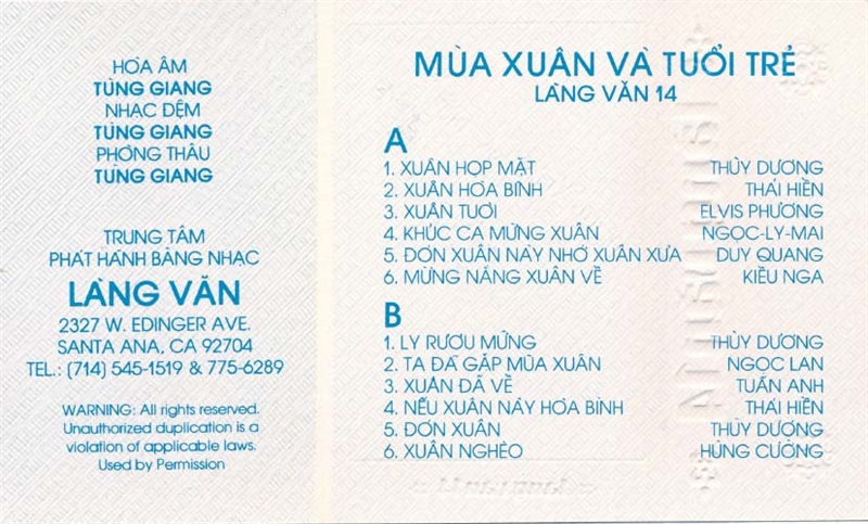 Làng Văn Tape 14 – Mùa Xuân Và Tuổi Trẻ (Băng Trong) KGTUS