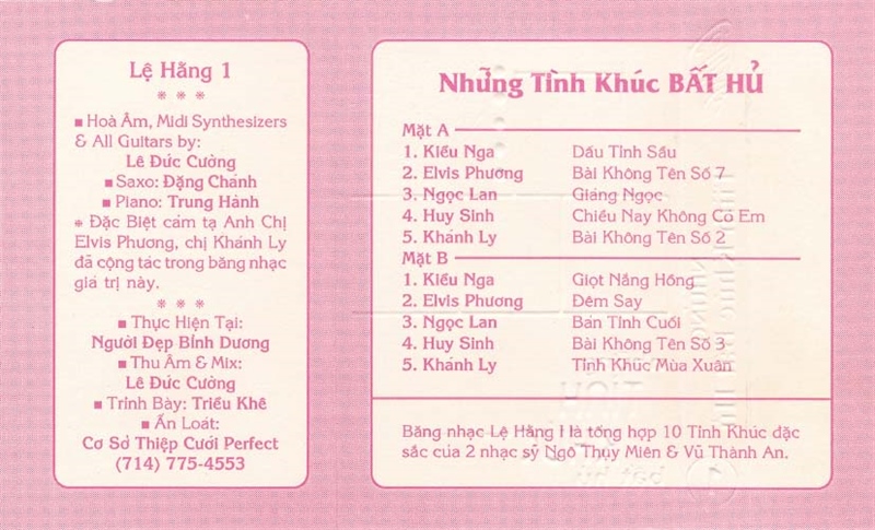 Lệ Hằng Tape 1 – Những Tình Khúc Bất Hủ (Băng Đen) KGTUS