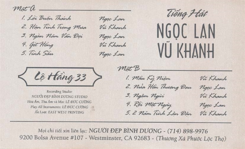 Lệ Hằng Tape 33 – Tiếng Hát Ngọc Lan – Vũ Khanh (Băng Trắng) KGTH9