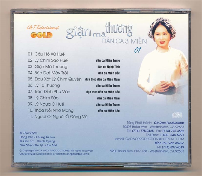 L&T GOLD CD1 – Dân Ca 3 Miền 1 – Giận Mà Thương – Hồng Vân