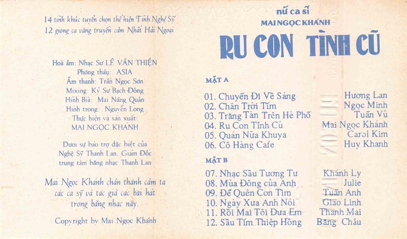 Mai Ngọc Khánh Tape 1 – Ru Con Tình Cũ (Băng Trong) KGTUS