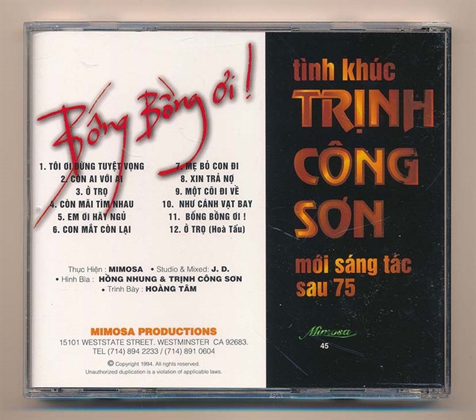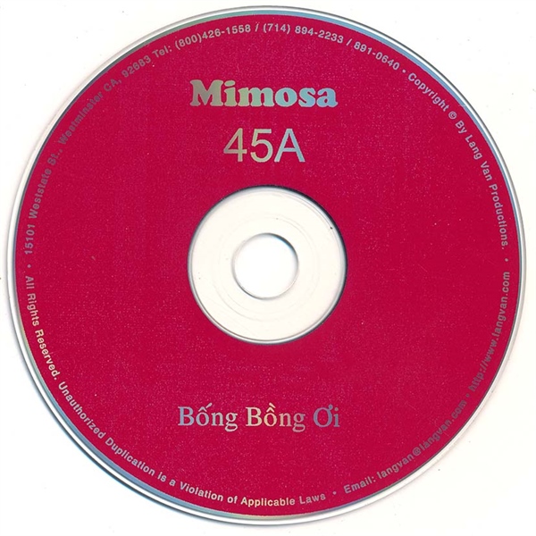Mimosa CD45A – Tình Khúc Trịnh Công Sơn – Bống Bồng Ơi – Hồng Nhung (Phôi Số)