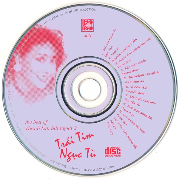 MNK CD43 – Trái Tim Ngục Tù – The Best Of Thanh Lan Hải Ngoại 2 (ADCA) KGTUS