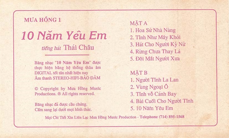 Mưa Hồng Tape 1 – Mười Năm Yêu Em – Thái Châu (Băng Trắng) KGTUS