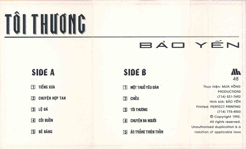 Mưa Hồng Tape 48 – Tôi Thương – Bảo Yến (KGTUS)