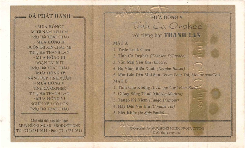 Mưa Hồng Tape 5 – Tình Ca Orphee – Thanh Lan (KGTUS)