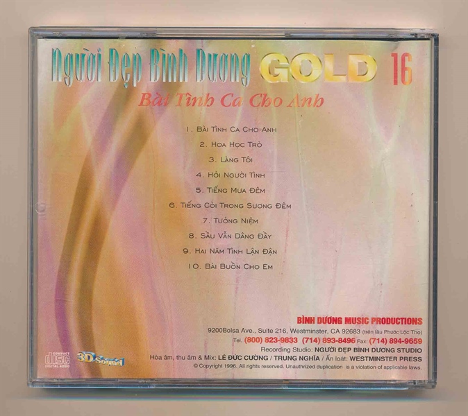 NDBD GOLD CD16 – Bài Tình Ca Cho Anh – Hương Lan (Bìa thấm nước, cd có trầy) KGTUS – cái