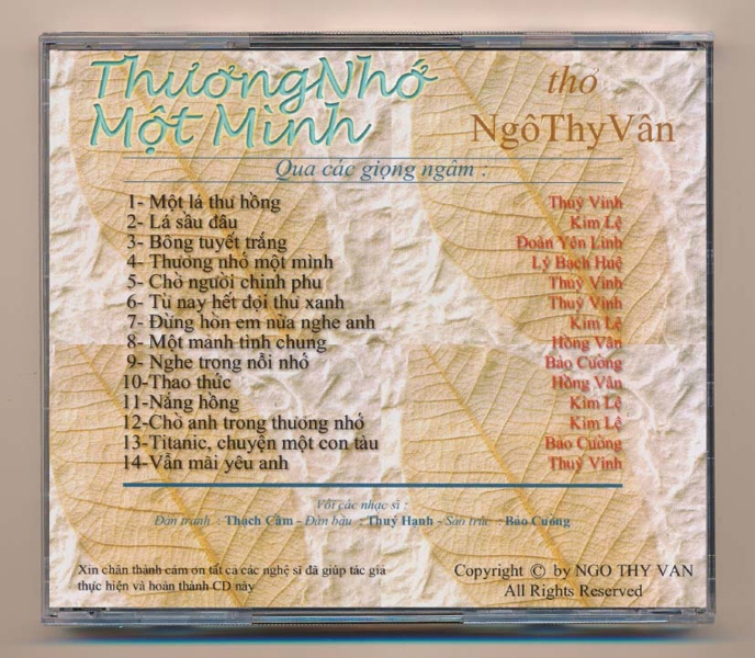 Ngô Thuy Vân CD – Thương Nhớ Một Mình (CD Thơ)