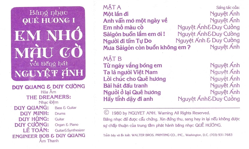 Nguyệt Ánh Tape – Băng Nhạc Quê Hương 1 – Em Nhớ Màu Cờ (KGFR)