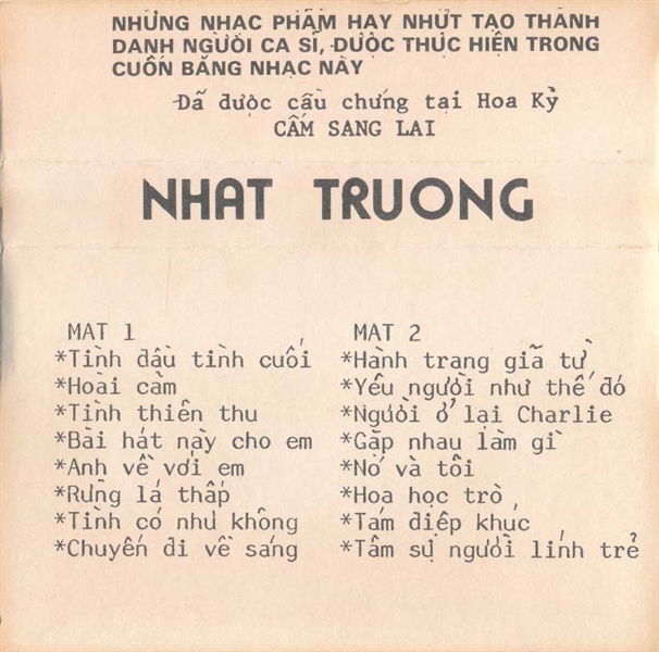 Nhật Trường Tape – Tiếng Hát Nhật Trường Phát Hành Lần Đầu 1981 (KGTUS)