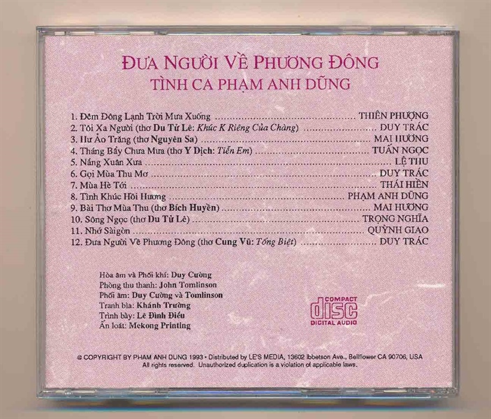 Phạm Anh Dũng CD – Tình Ca Phạm Anh Dũng – Đưa Người Về Phương Đông