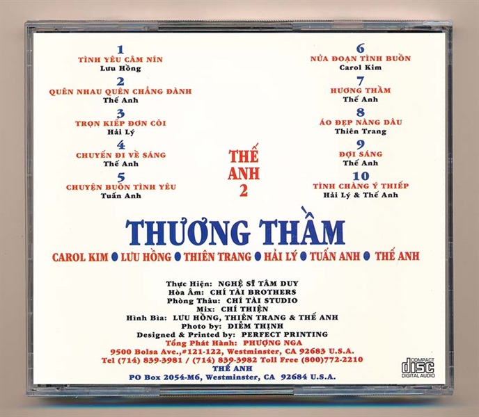Phượng Nga CD – Thương Thầm – Thế Anh 2 (Lưu Hồng – Thiên Trang – Hải Lý – Carol Kim – Tuấn Anh – Thế Anh) (JVC, Trầy nhẹ) KGTUS