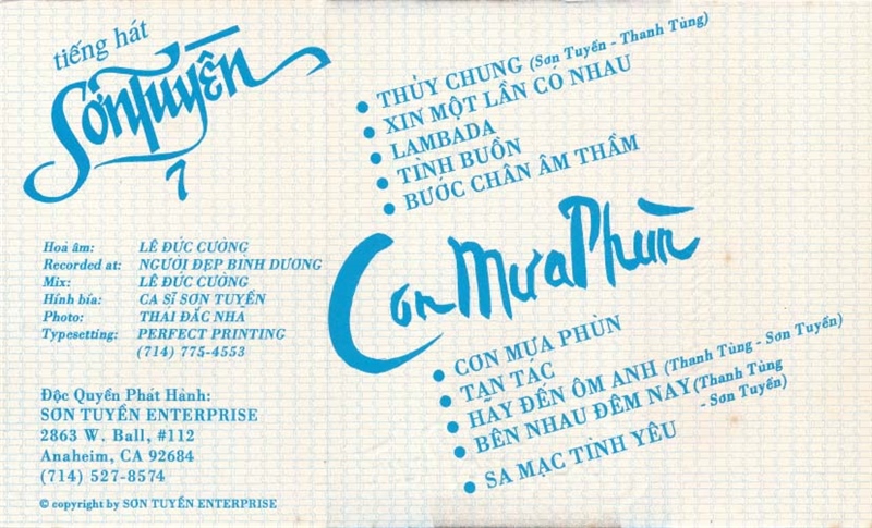 Sơn Tuyền Tape 7 – Cơn Mưa Phùn (Băng Trắng) KGTUS