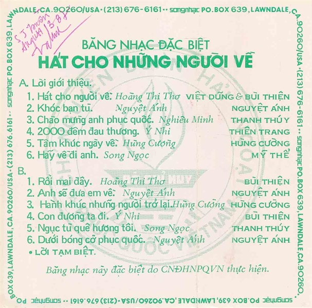 Sóng Nhạc Tape – Hát Cho Những Người Về (KGTUS)