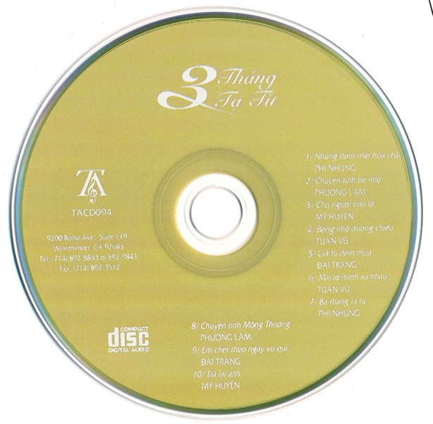 TACD94 – 3 Tháng Tạ Từ (Phôi Số, Bìa 1 Lá) KGTUS