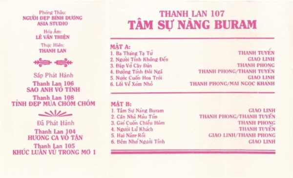 Thanh lan Tape 107 – Tâm Sự Nàng Buram – Thanh Tuyền – Giao Linh – Thanh Phong (Băng Trong) KGTUS