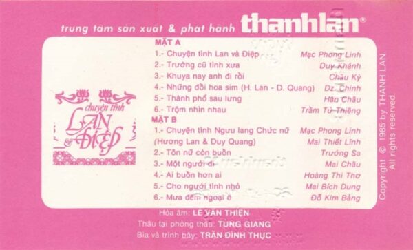 Thanh Lan Tape 28 – Chuyện Tình Lan Và Điệp 1 – Hương Lan (Băng Đen) KGTUS