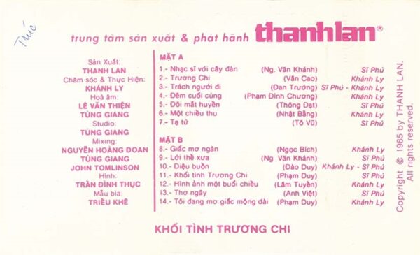 Thanh Lan Tape 34 – Khối Tình Trương Chi – Khánh Ly – Sĩ Phú (Băng Trong) KGTUS