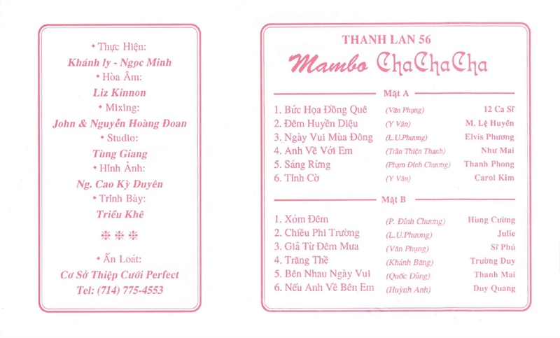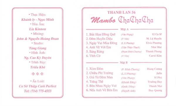 Thanh Lan Tape 56 – Hòa Tấu Mambo Cha Cha Cha (băng Trong, KHÔNG BÌA GỐC) KGTUS