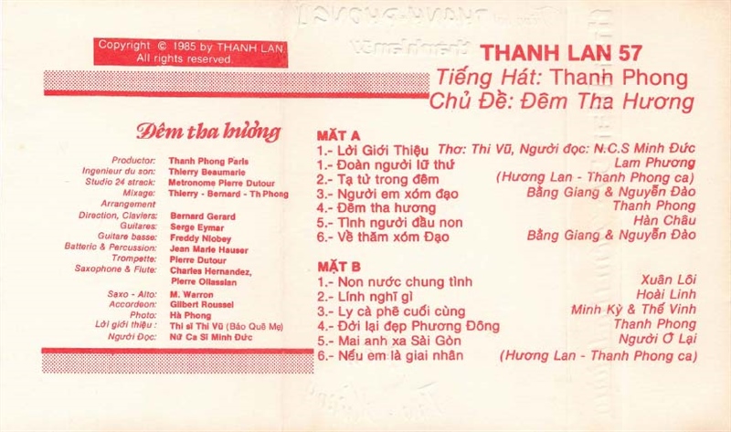 Thanh Lan Tape 57 – Đêm Tha Hương – Thanh Phong 1 (Băng Đen) KGTUS