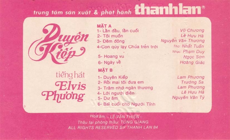 Thanh Lan Tape 7 – Duyên Kiếp – Elvis Phương (Băng Đen, KHÔNG BÌA GỐC) KGTUS