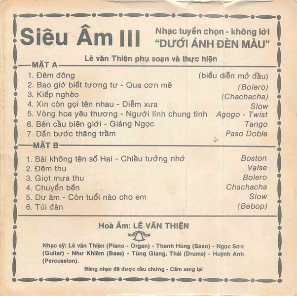 Thanh Thúy Tape – Siêu Âm 3 – Nhạc Tuyển Chọn Không Lời – Dưới Ánh Đèn Màu (Băng Đen) KGTUS