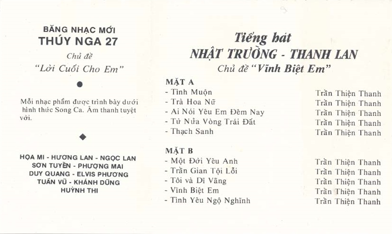 Thúy Nga Tape 26 – Vĩnh Biệt Em – Nhật Trường – Thanh Lan (Băng Đen) KGMG