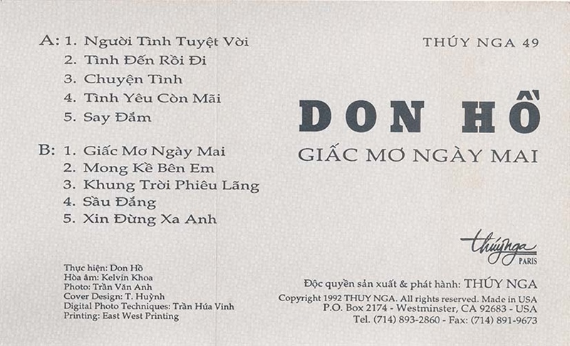 Thúy Nga Tape 49 – Giấc Mơ Ngày Mai – Don Hồ (KGTUS)