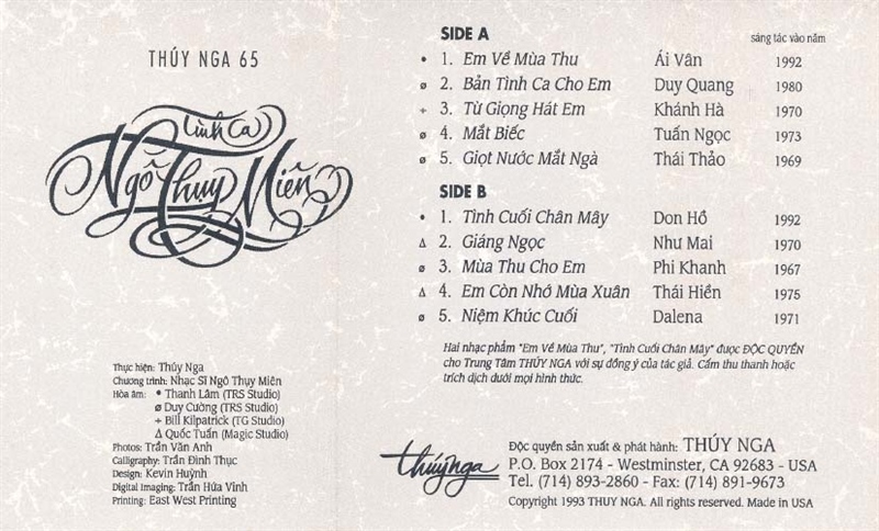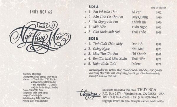 Thúy Nga Tape 65 – Tình Ca Ngô Thụy Miên (KHÔNG BÌA GỐC) KGTUS