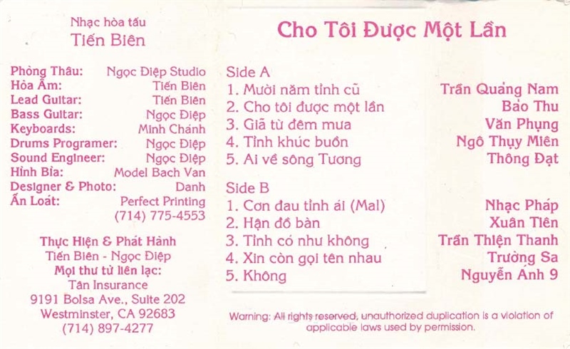 Tiến Biên Tape – Nhạc Hoà Tấu Cho Tôi Được Một Lần (Băng Trong) KGTUS